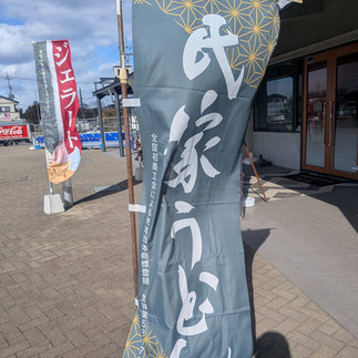 「氏家うどん」ののぼり旗がありますが、実はさくら市は小麦の名産地です。氏家うどん というブランドもあり、ぜひ食べてみてください。乾麺などのお土産もありますよ。